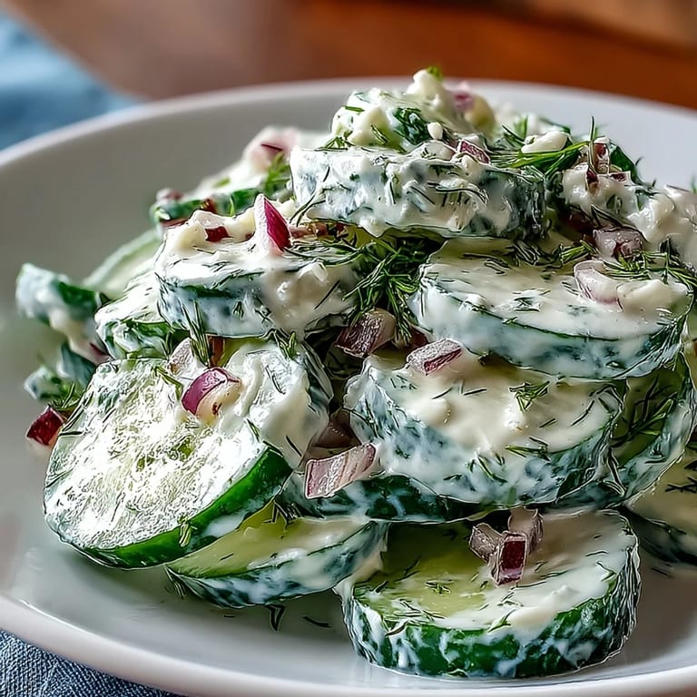 Pin It The first time I made this creamy cucumber dill salad, the kitchen was buzzing with sunlight and the scent of fresh dill. I remember rinsing the cucumbers, their coolness in my hands felt like relief on a muggy afternoon. My neighbor dropped by unexpectedly, drawn inside by the tangy aroma of the dressing I was whisking. We laughed at how something so simple could instantly make the house feel festive. That quick moment set the tone for this salad: spontaneous, refreshing, and easy to share.