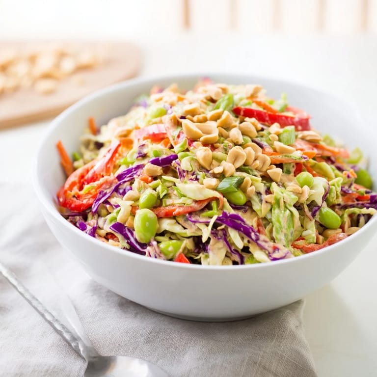 Pin It My neighbor showed up at my door one June afternoon with a giant bowl of something colorful and crunchy, insisting I try it before she left for her sister's potluck. One bite and I was hooked on the way the creamy peanut dressing clung to every shred of cabbage and carrot. She scribbled the recipe on the back of a grocery receipt, and I've been making it ever since, tweaking the lime and ginger until it tasted just right. It's become my go-to whenever I need something that feels light but still satisfying. Now I'm the one showing up at doors with this salad, and people always ask for the recipe.