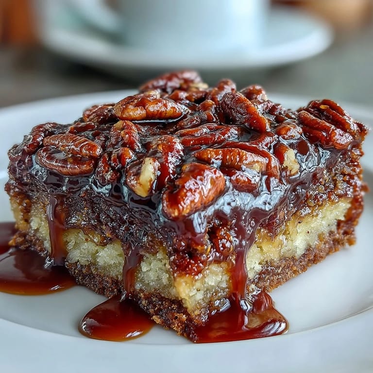 Pin It The beauty of these bars lies in their three distinct layers, each contributing its own character to the final result. The shortbread crust provides a tender, buttery foundation that holds up beautifully against the rich filling. The pecan pie layer delivers that iconic combination of caramelized sweetness and nutty crunch, while the bourbon glaze adds a final flourish that ties everything together with its silky texture and gentle kick of whiskey flavor.