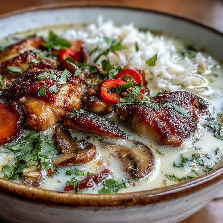 If you prefer an even heartier meal, serve the soup with an extra side of steamed jasmine rice. For the perfect drink pairing, choose a crisp Riesling or a traditional Thai iced tea to complement the aromatic spices and creamy coconut base.